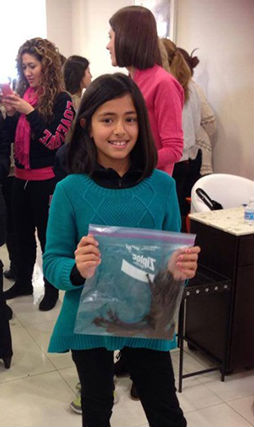 At Strand Together events, individuals donate a minimum of 9 inches of their hair. After it’s professionally cleaned, the hair is used to create a special kind of wig called a Hip Hat with Hair. Hip Hats with Hair have ‘under hair’ which is attached to a soft piece of fabric that covers the top of the head and then any kind of hat can be worn on top of it.