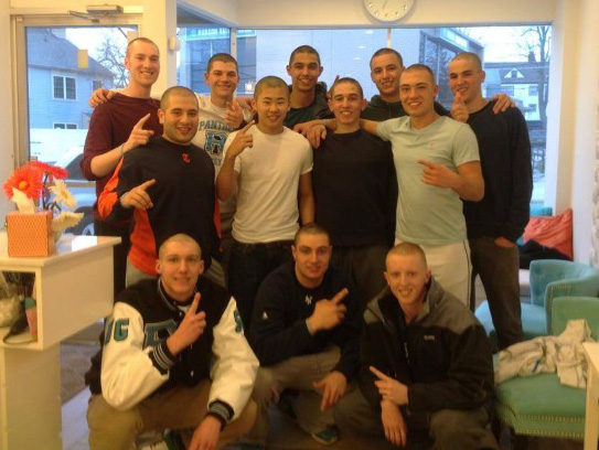 The rye neck baseball team of boys shaved there heads for one of there team mates who was diagnosed with cancer and had lost his hair. The Beauty Bar was happy to set up a time to have all the boys together to show support to their friend and teammate.
